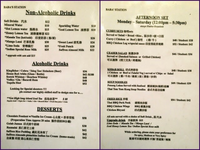 看看餐牌,只有底面兩板,但不計甜品及飲品,也有85款之多,大至分成8個種別,包括了:自家制系列、小食、咖哩、烤焗、卡巴、沙律&湯品、薄餅及粉麵飯類,而咖哩類則再細分為雞、羊、牛、海鮮及蔬菜類,每款也會配上白飯及薄餅~價錢田$70-$90元不等