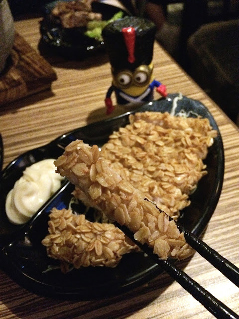 地方較銅鑼灣店大一點,感覺也截然不同,環境較暗,左面設有一部大電視還可以點插歌曲,而右邊就有一排吧枱位置,天花上還掛有一個個燈籠,充滿了日式風格